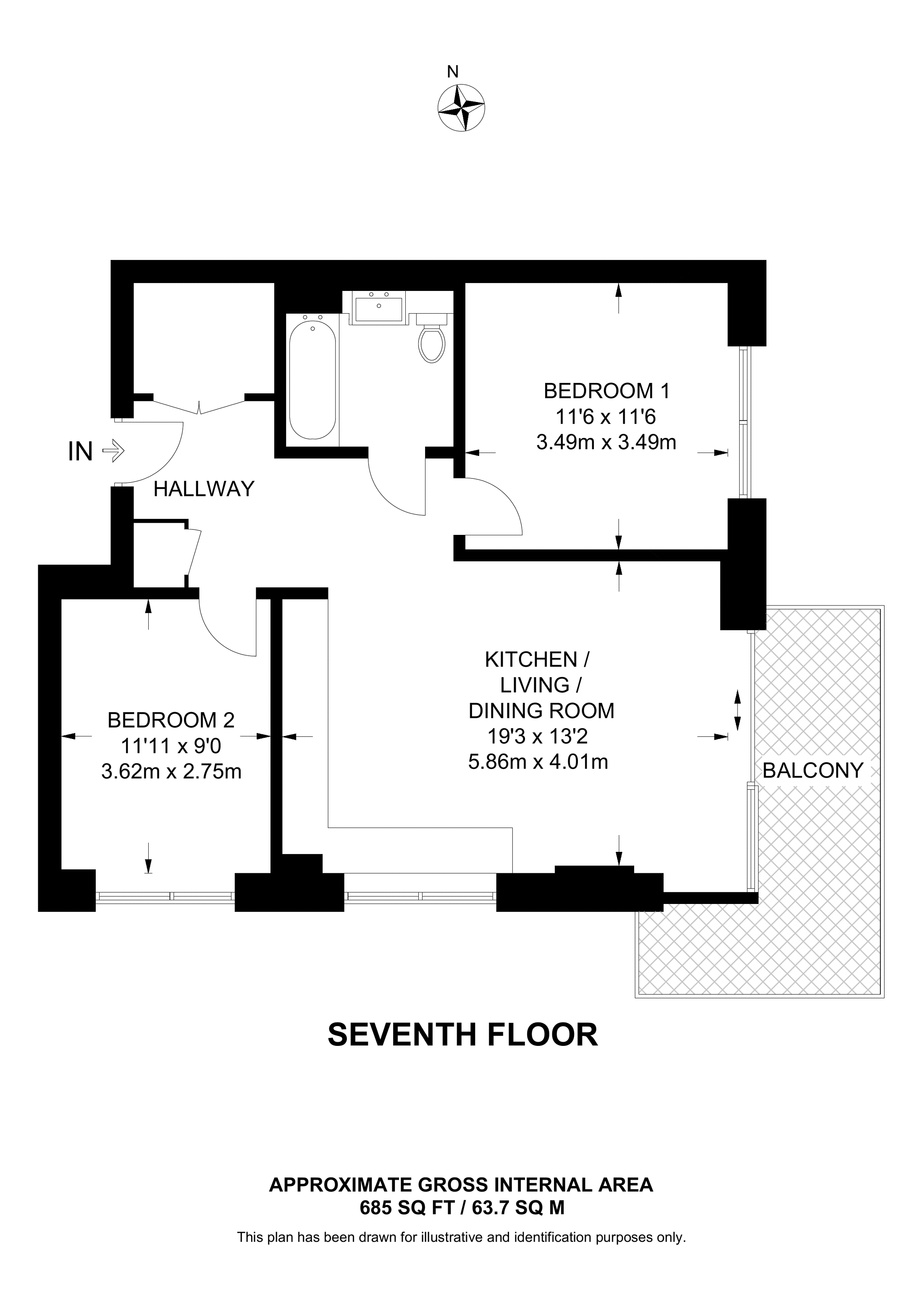 £565,000 7th floor flat | 2 Beds | 685 Sq Ft64 Sq M | ||