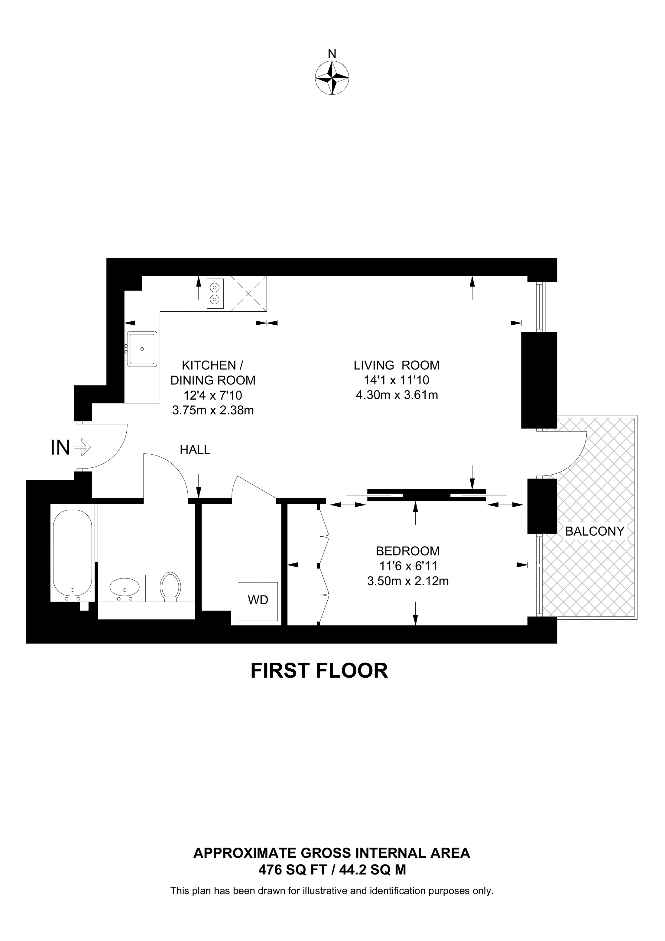 £790,000 East aspect. 1st floor flat | 1 Bed | 544 Sq Ft51 Sq M | ||