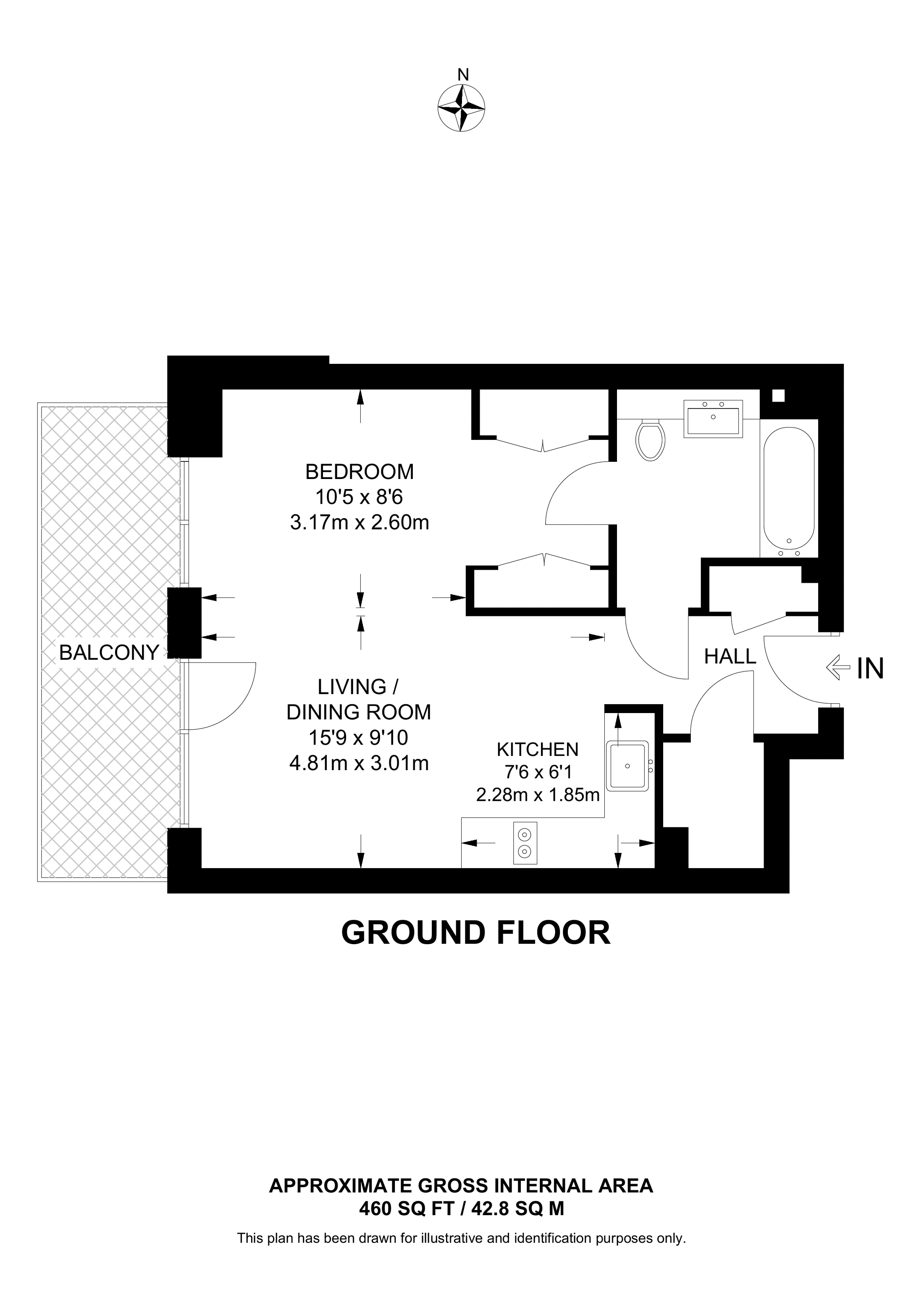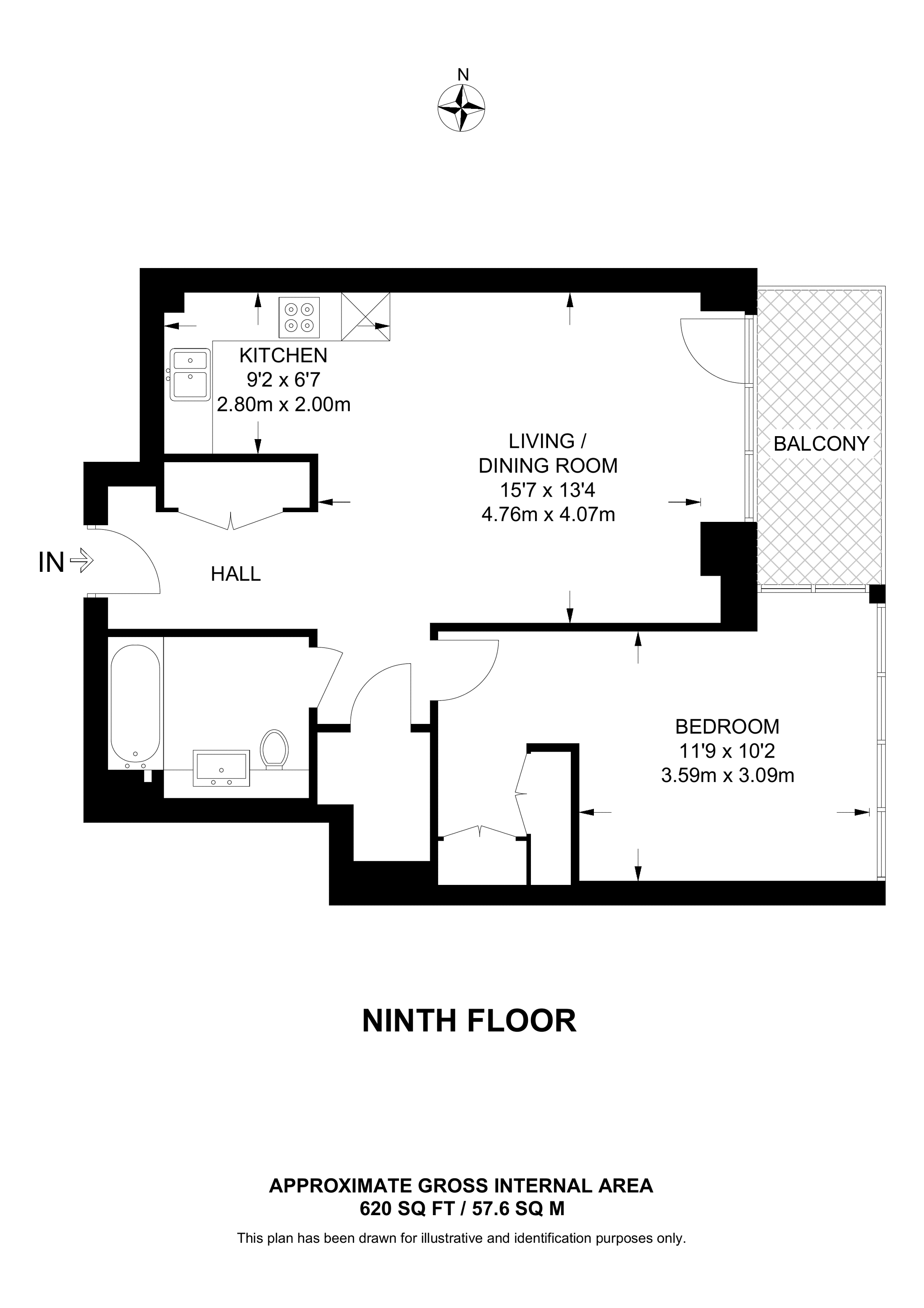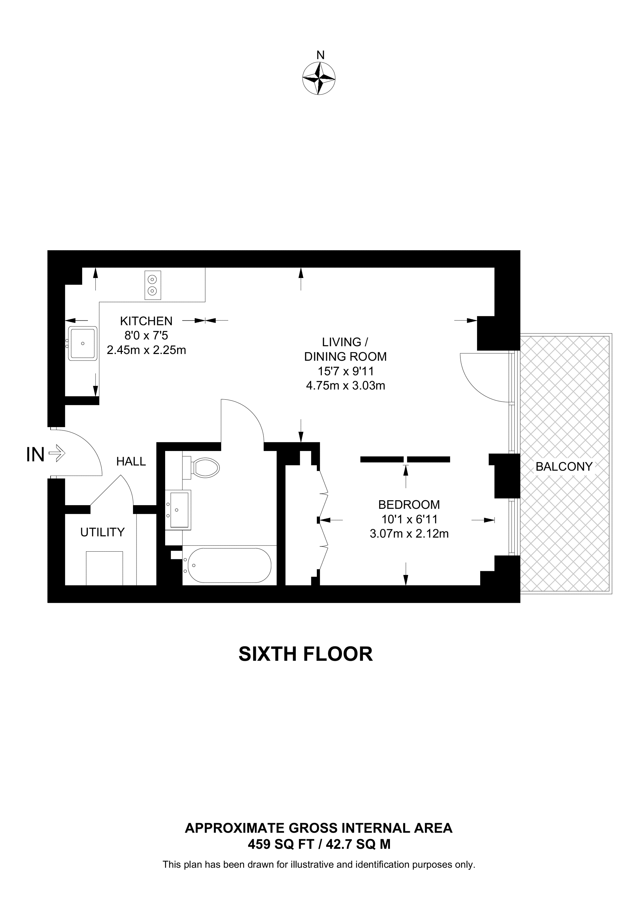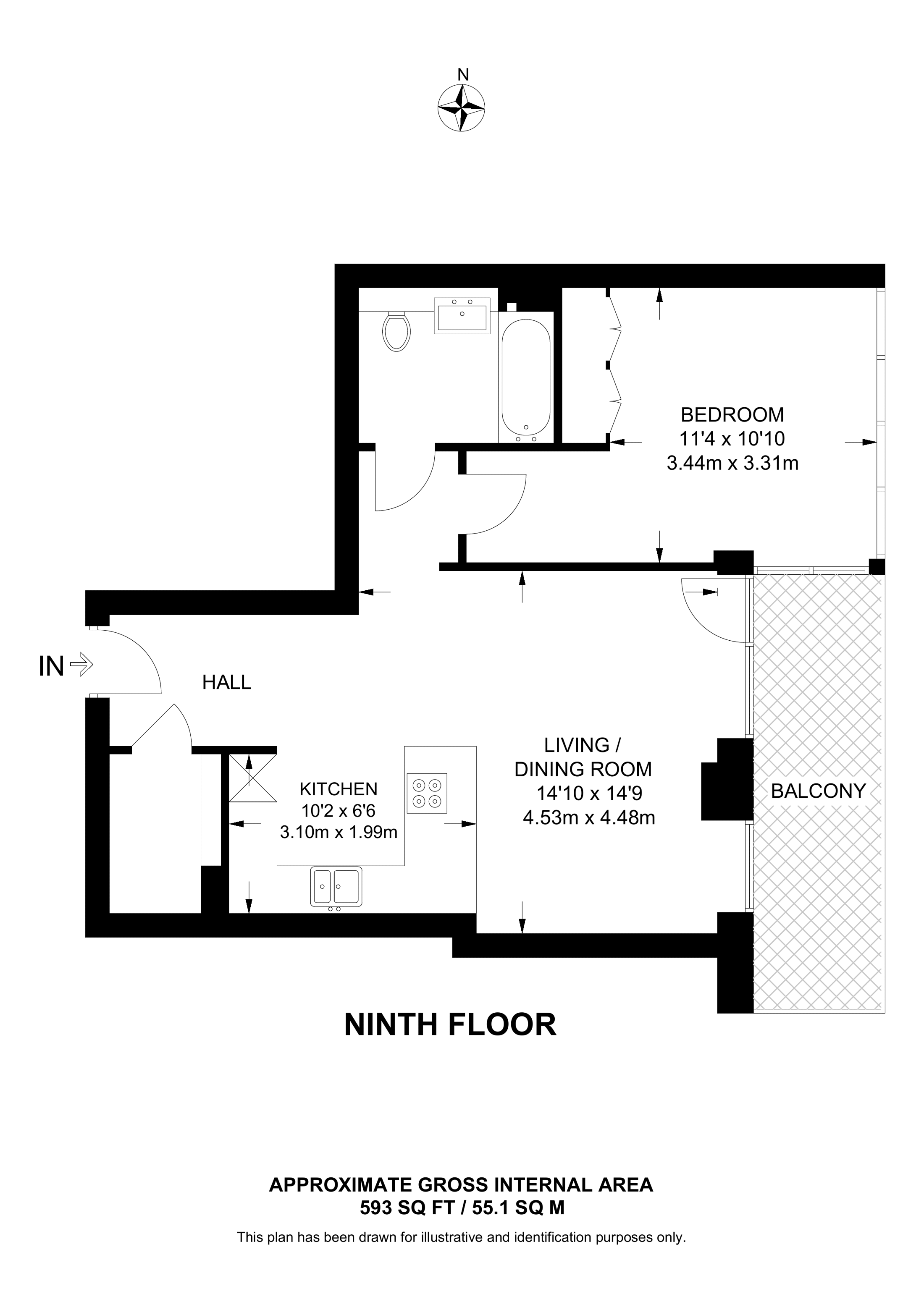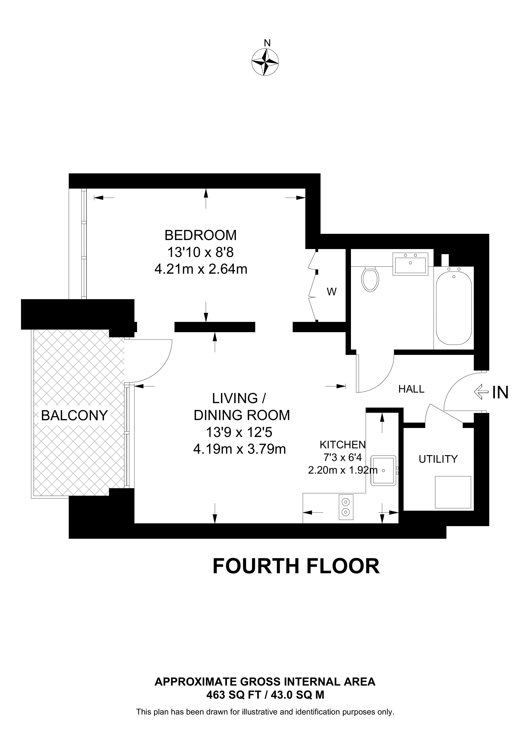 £685,000 West aspect. 4th floor flat | 1 Bed | 463 Sq Ft43 Sq M | ||