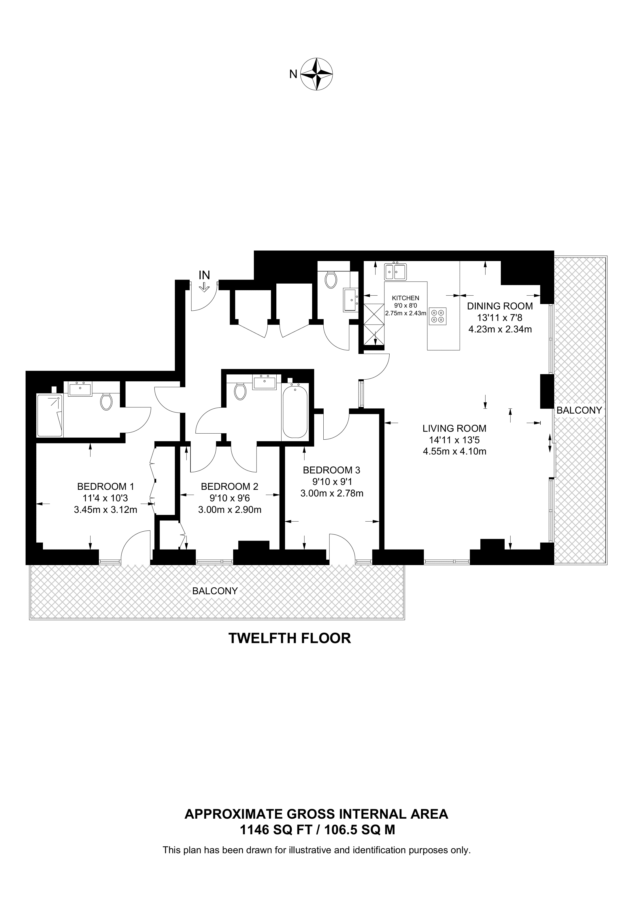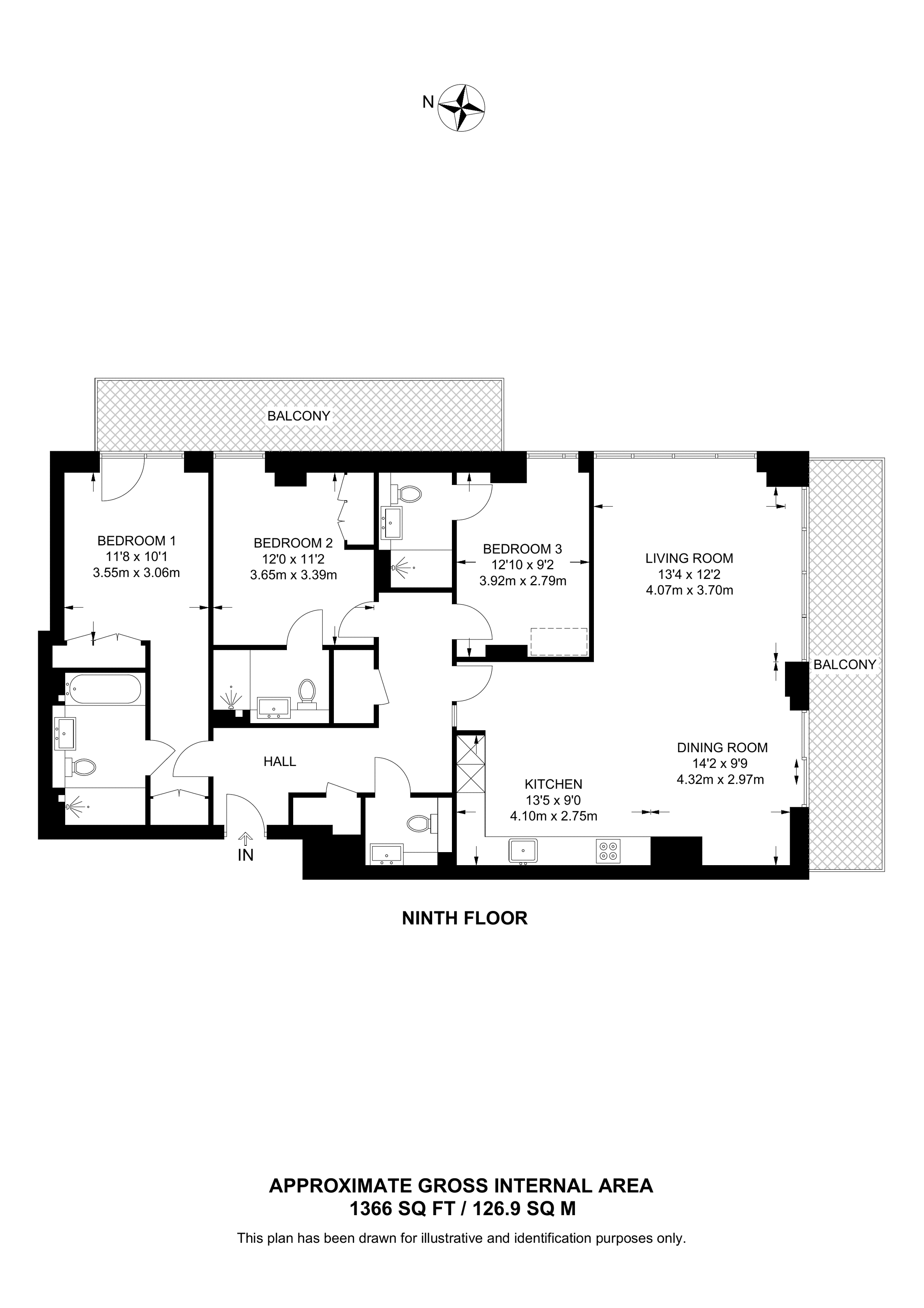£2,310,000 South aspect. 9th floor flat | 3 Beds | 1,366 Sq Ft127 Sq M |