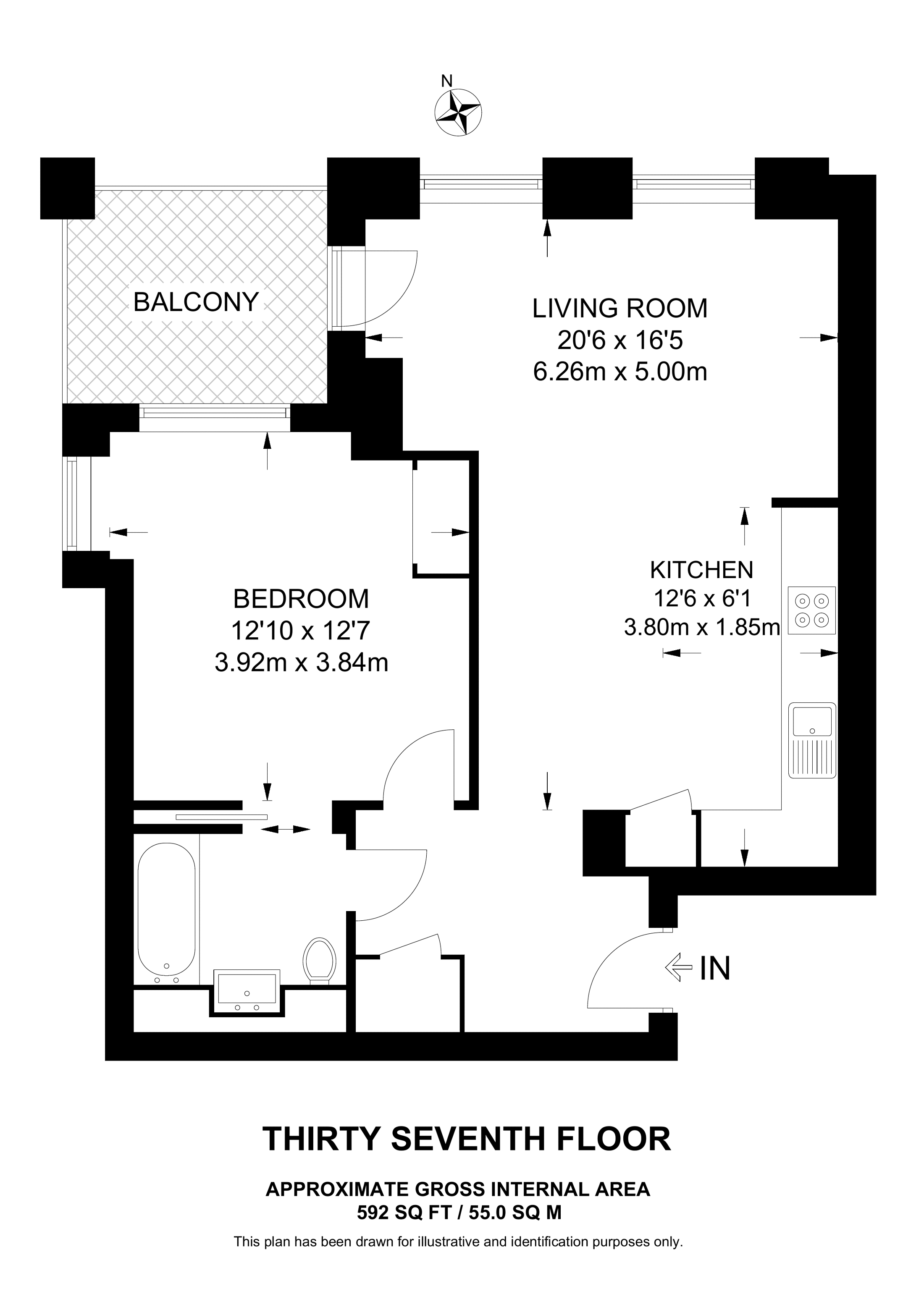 £673,000 North East aspect. 29th floor flat | 1 Bed | 624 Sq Ft58 Sq M | ||
