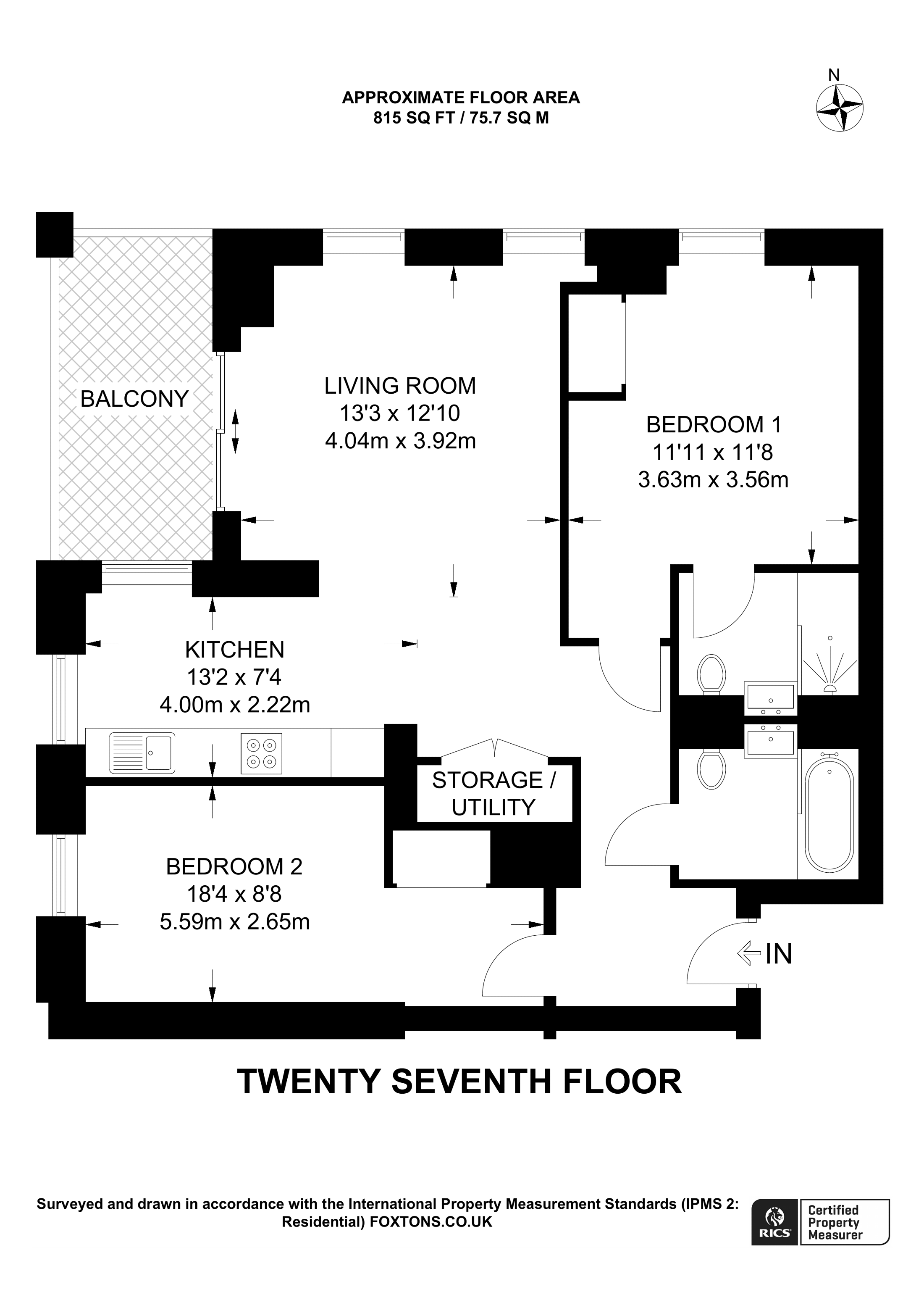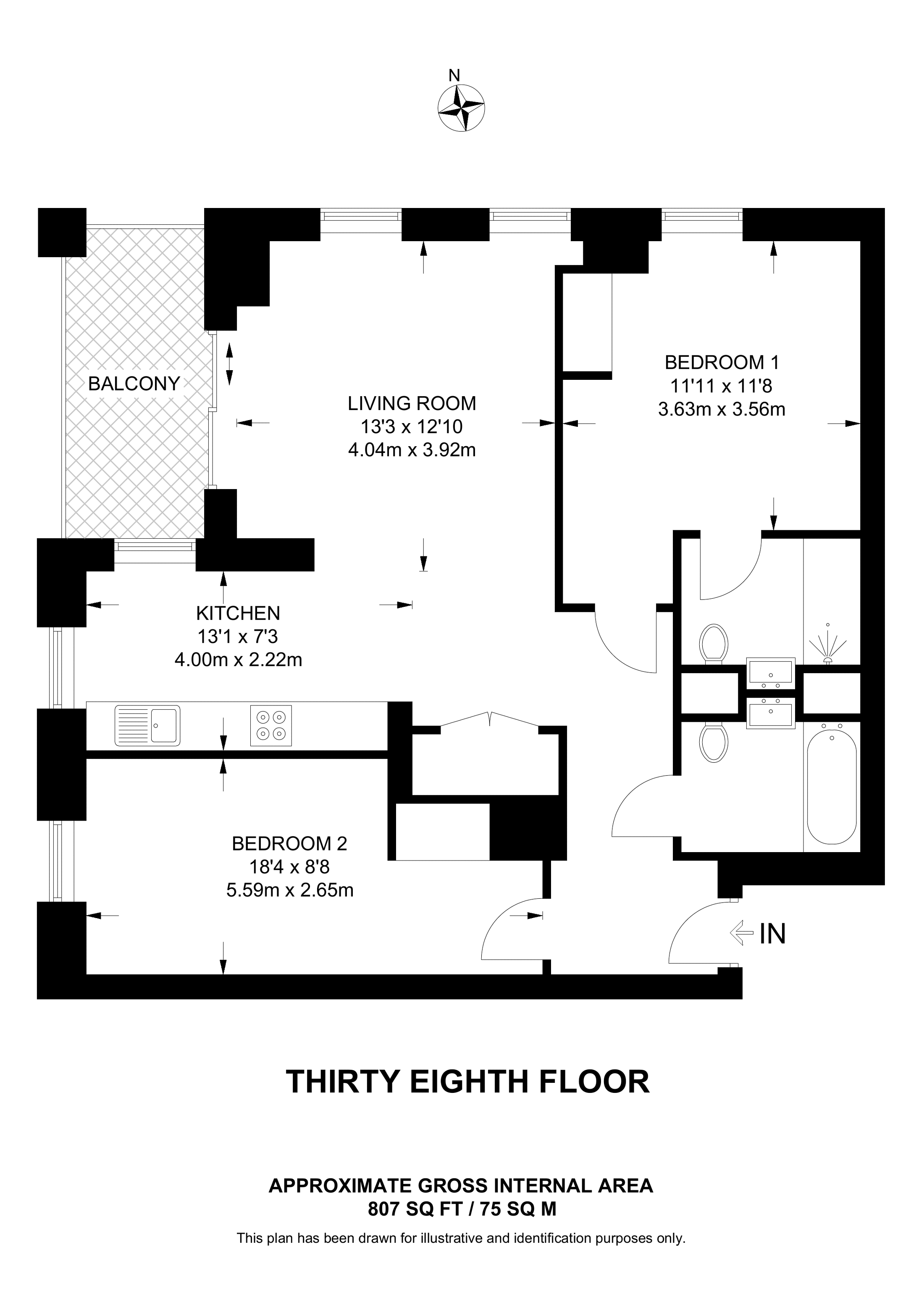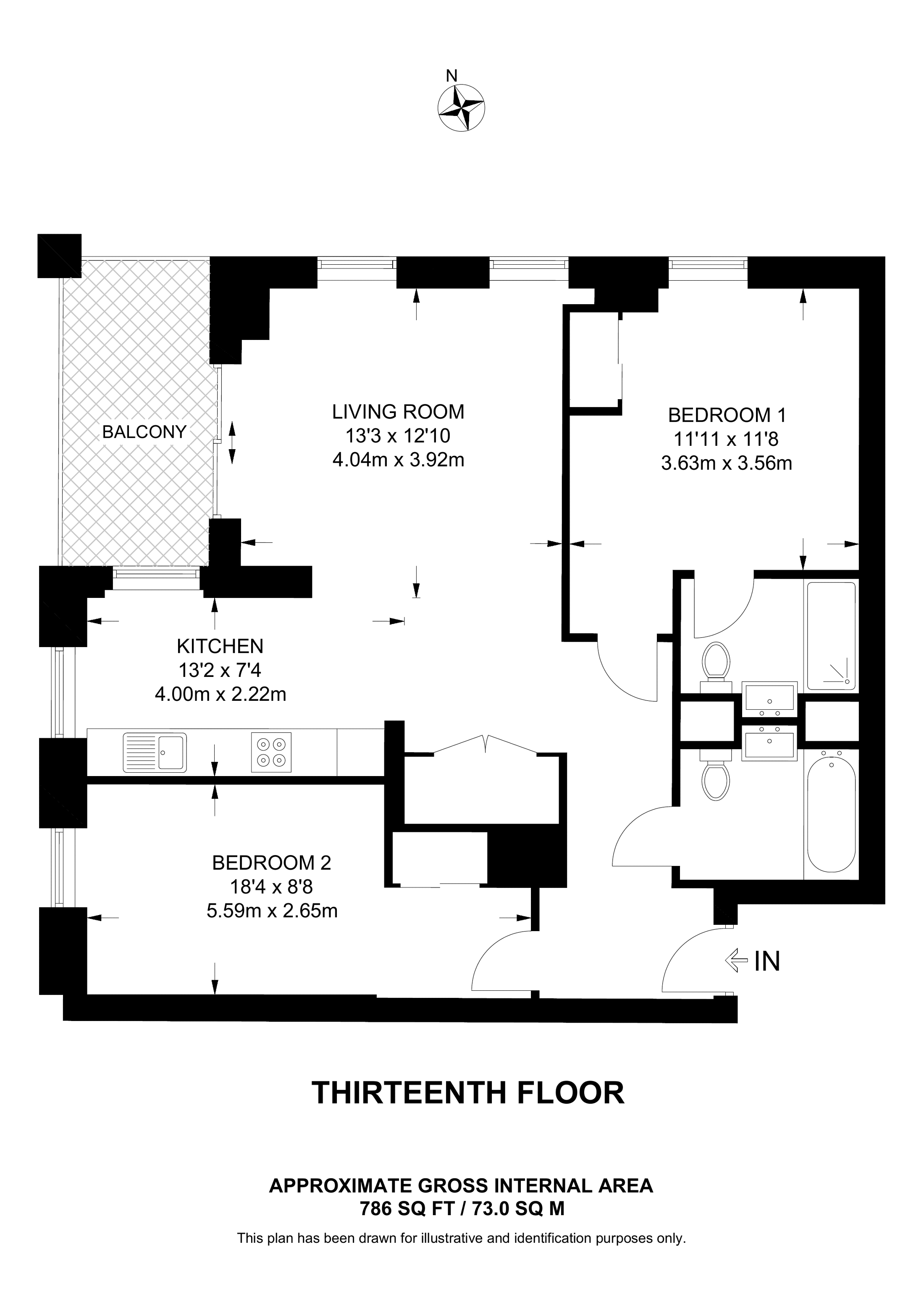£895,000 North East aspect. 13th floor flat | 2 Beds | 786 Sq Ft73 Sq M | ||