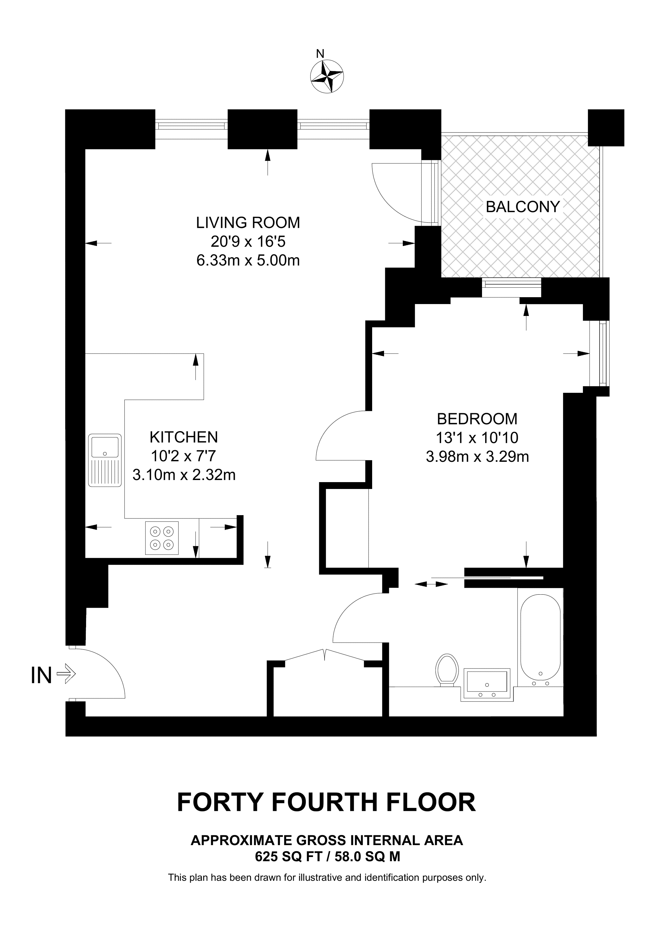 £718,000 North East aspect. 44th floor flat | 1 Bed | 625 Sq Ft58 Sq M | ||