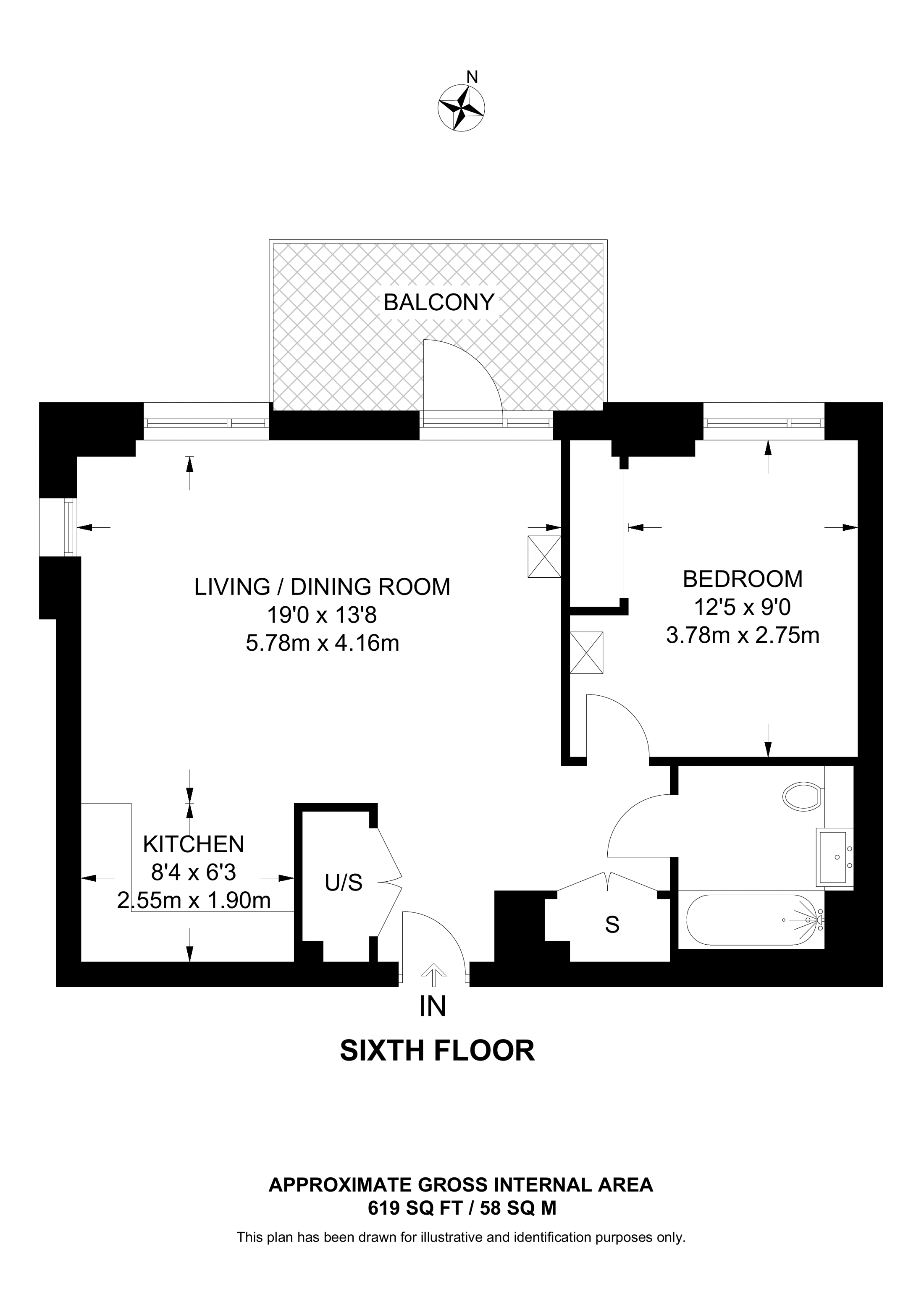 £695,000 North aspect. 7th floor flat | 1 Bed | 563 Sq Ft52 Sq M | ||