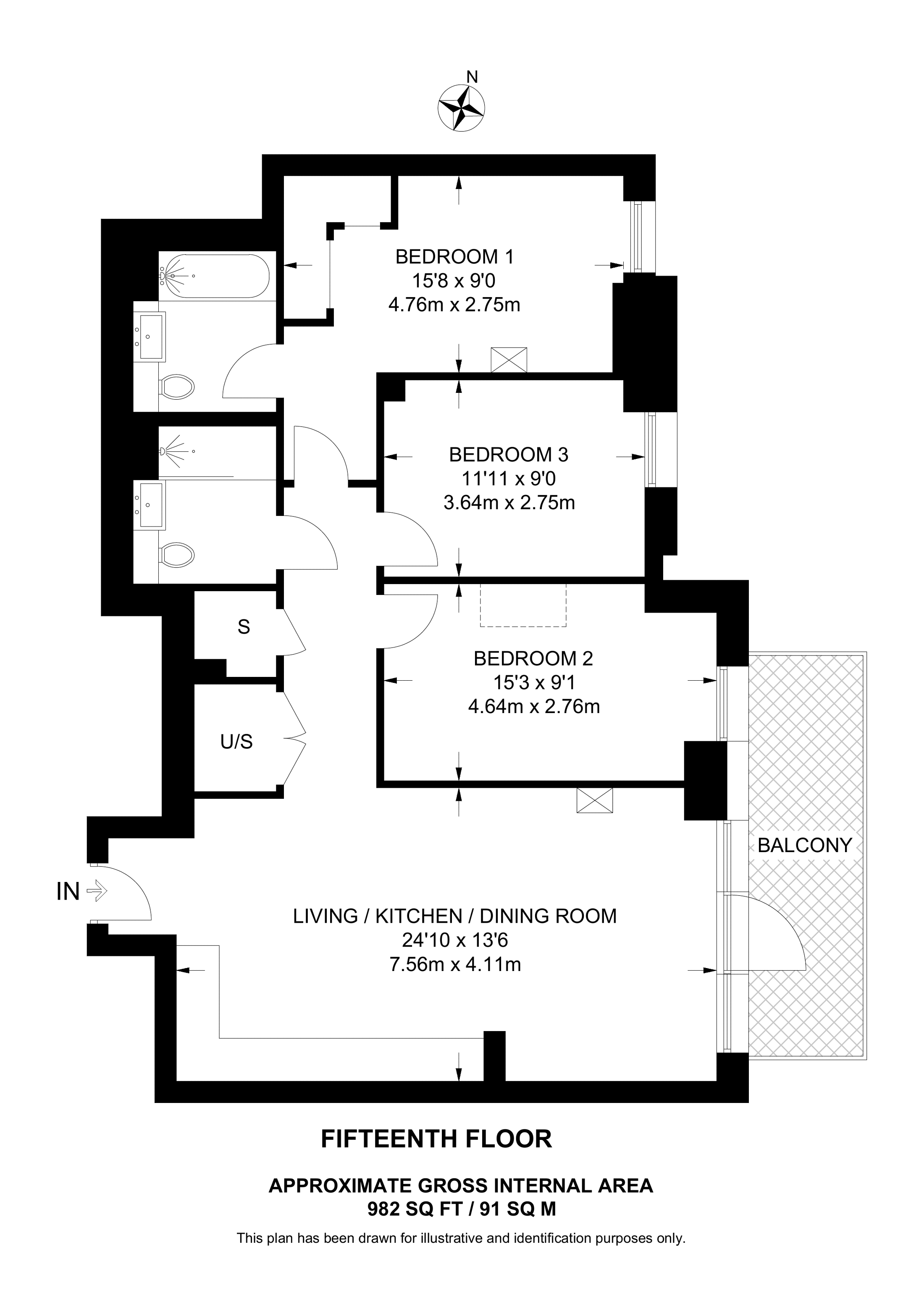 £1,510,000 East aspect. 15th floor flat | 3 Beds | 982 Sq Ft91 Sq M | ||