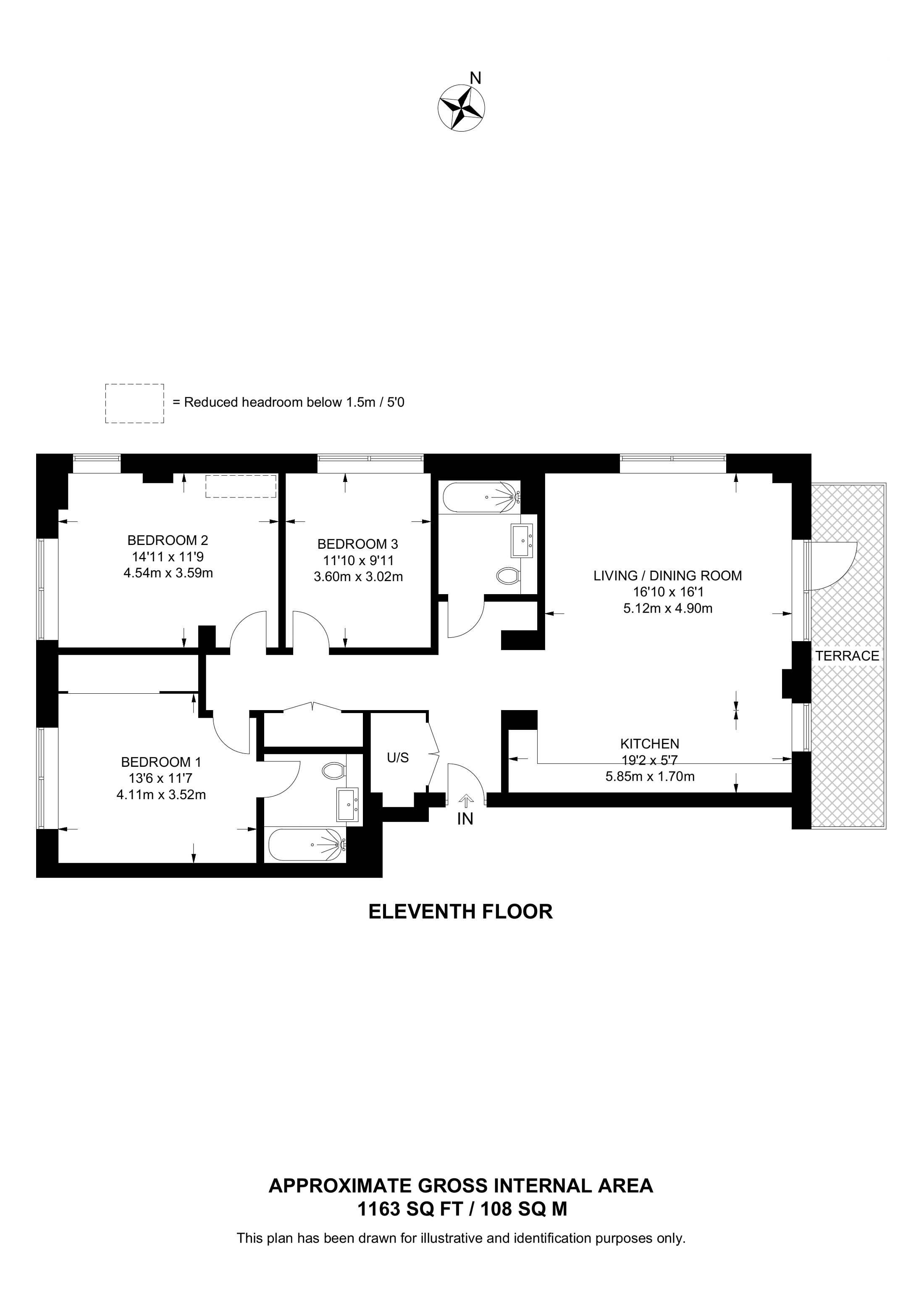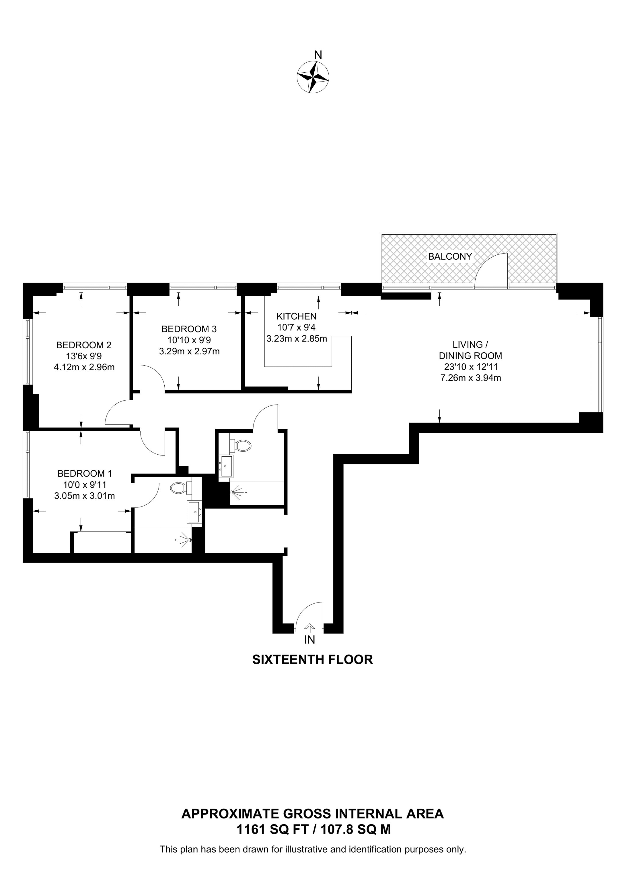 £1,600,000 East aspect. 11th floor flat | 3 Beds | 1,163 Sq Ft108 Sq M | ||