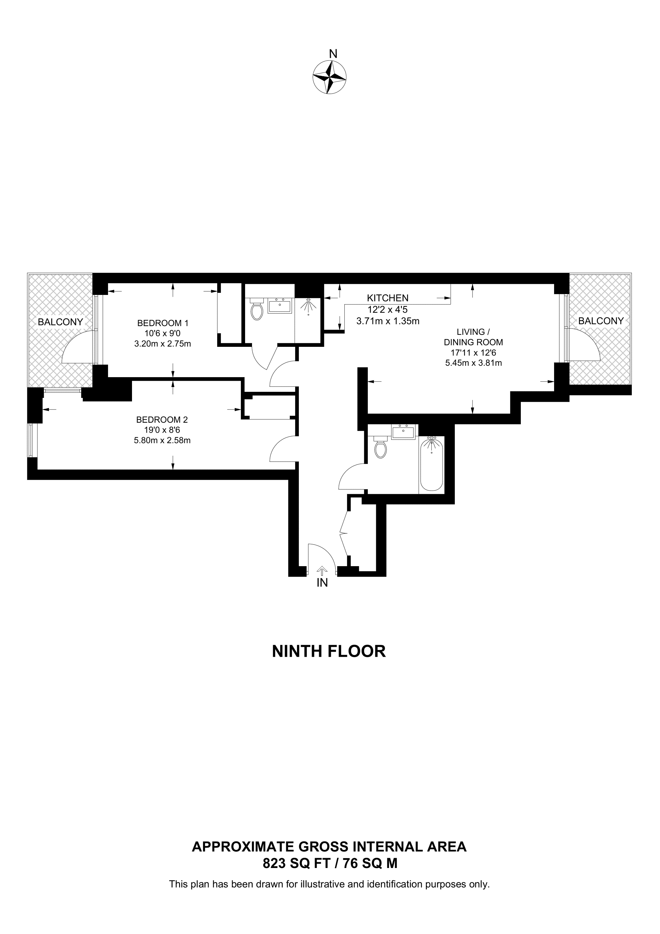 £1,240,000 East aspect. 8th floor flat | 2 Beds | 823 Sq Ft76 Sq M | ||