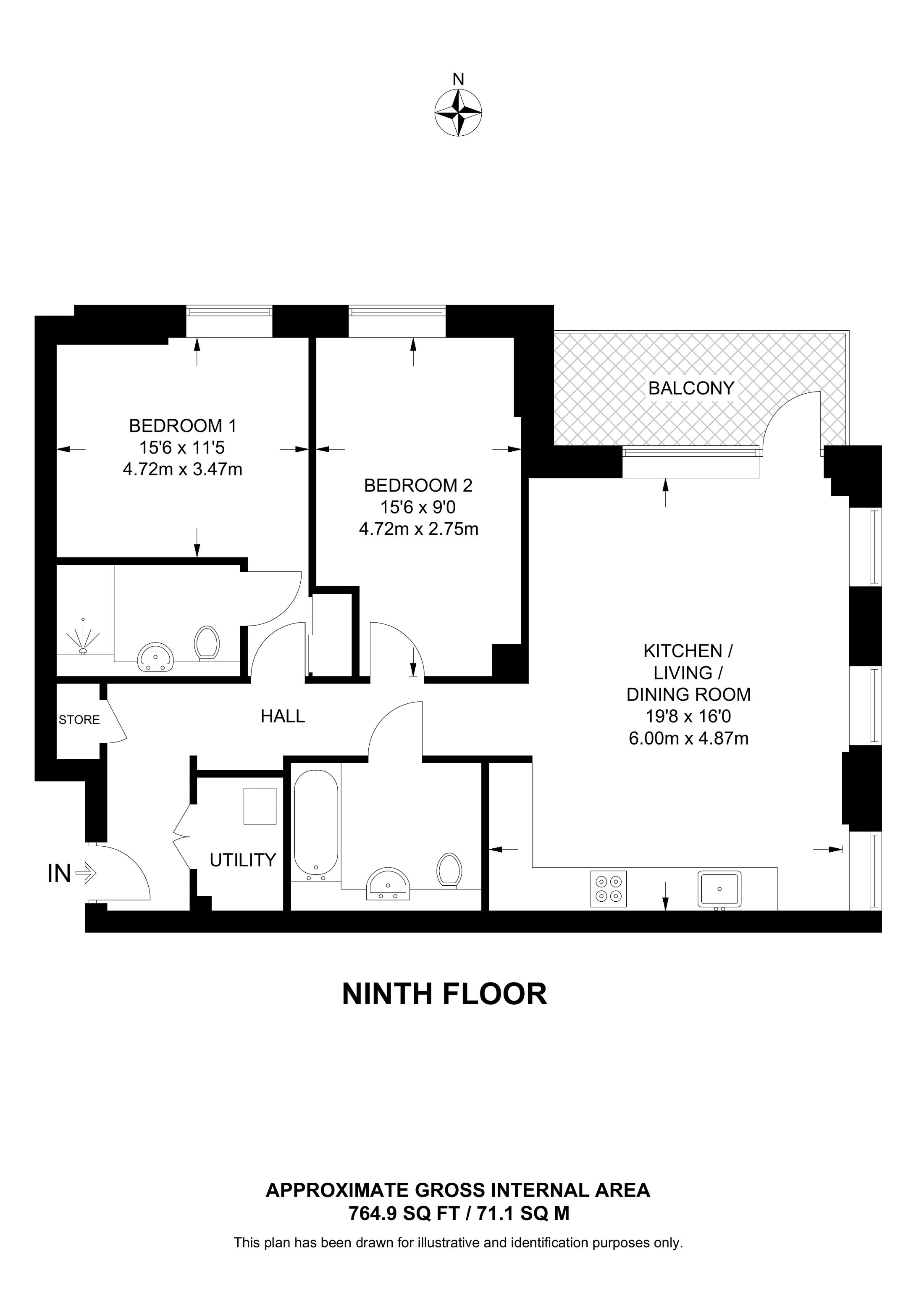 £523,000 North East aspect. 9th floor flat | 2 Beds | 764 Sq Ft71 Sq M | ||