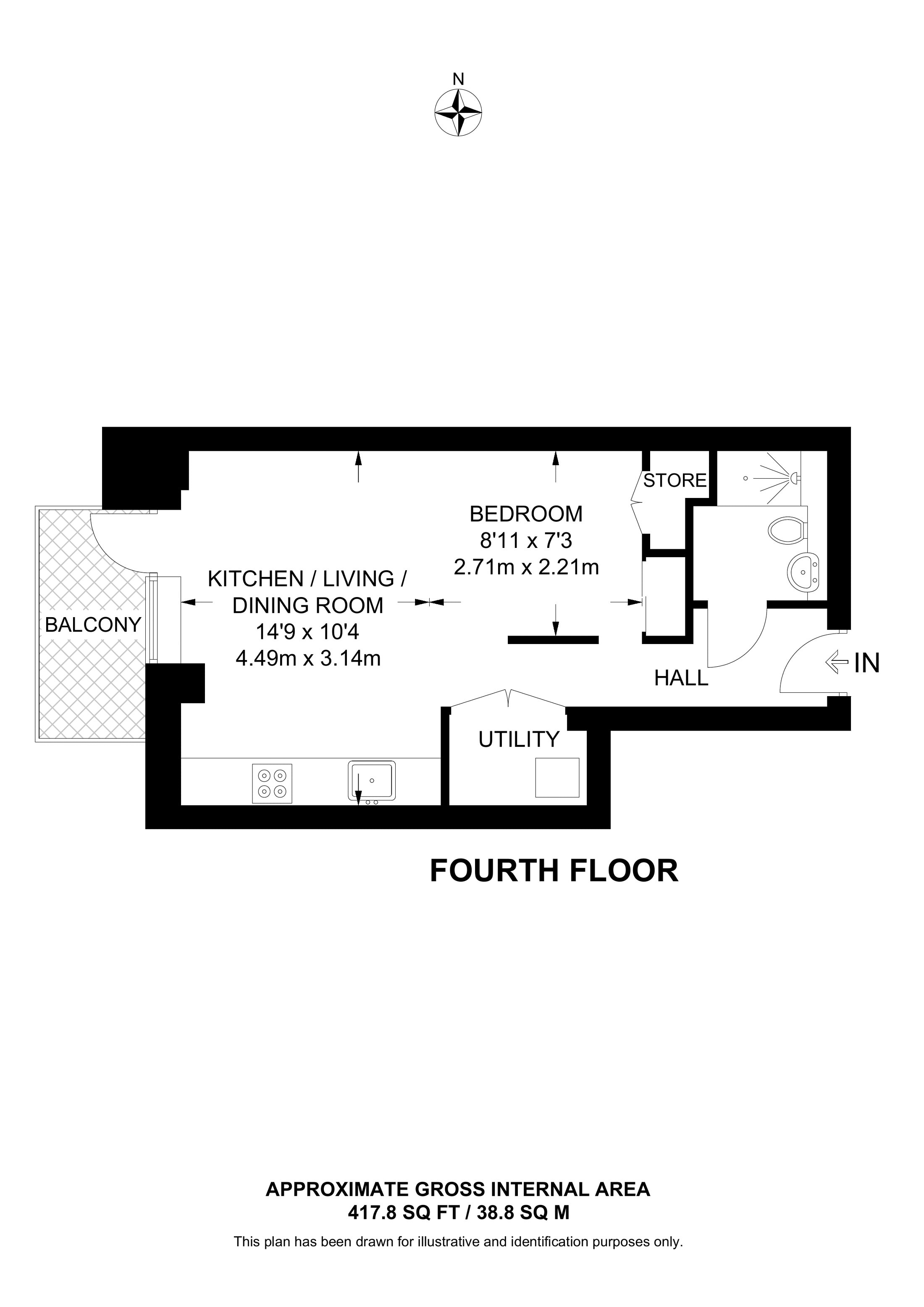 £299,999 West aspect. 4th floor flat | Studio | 417 Sq Ft39 Sq M | ||