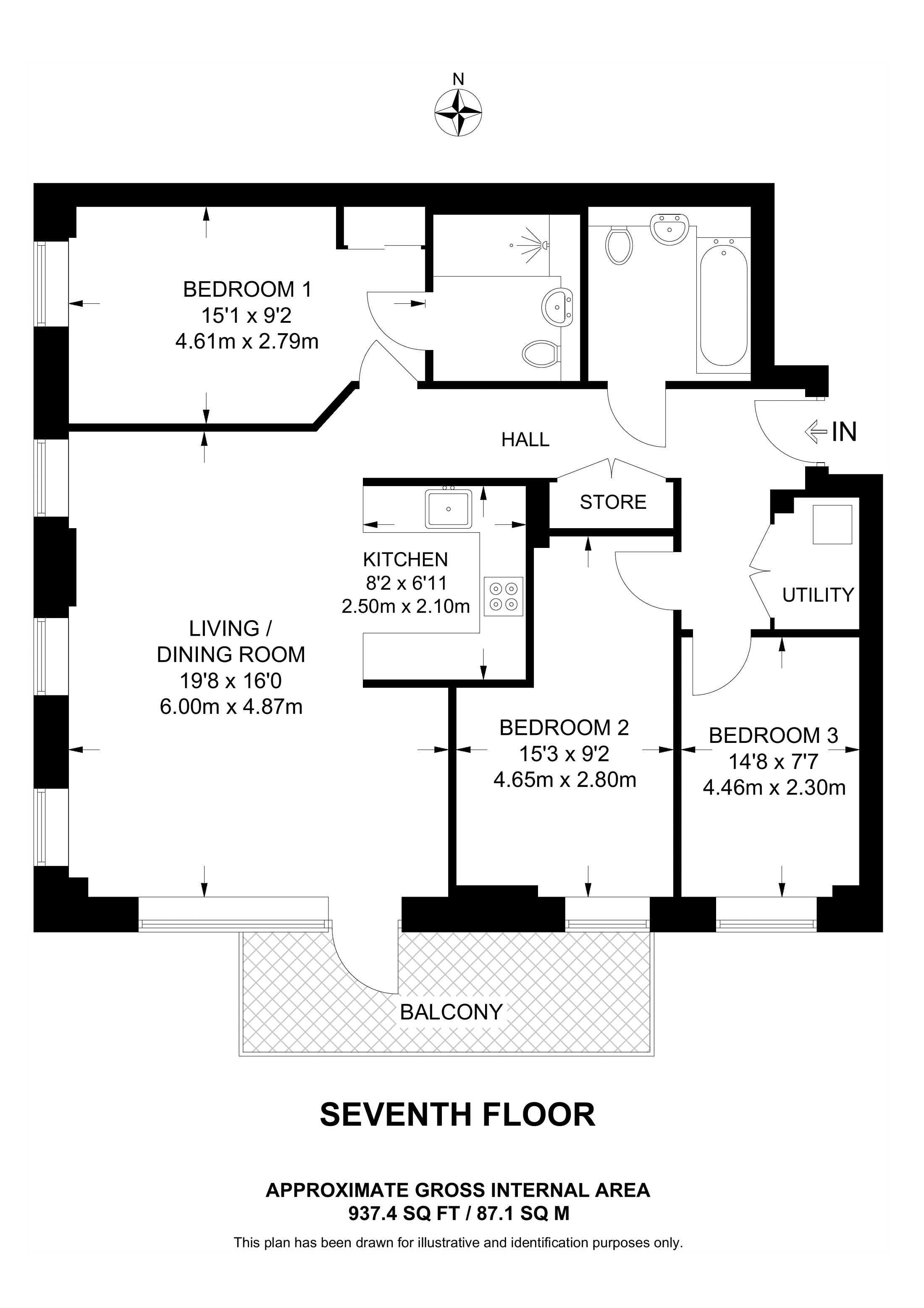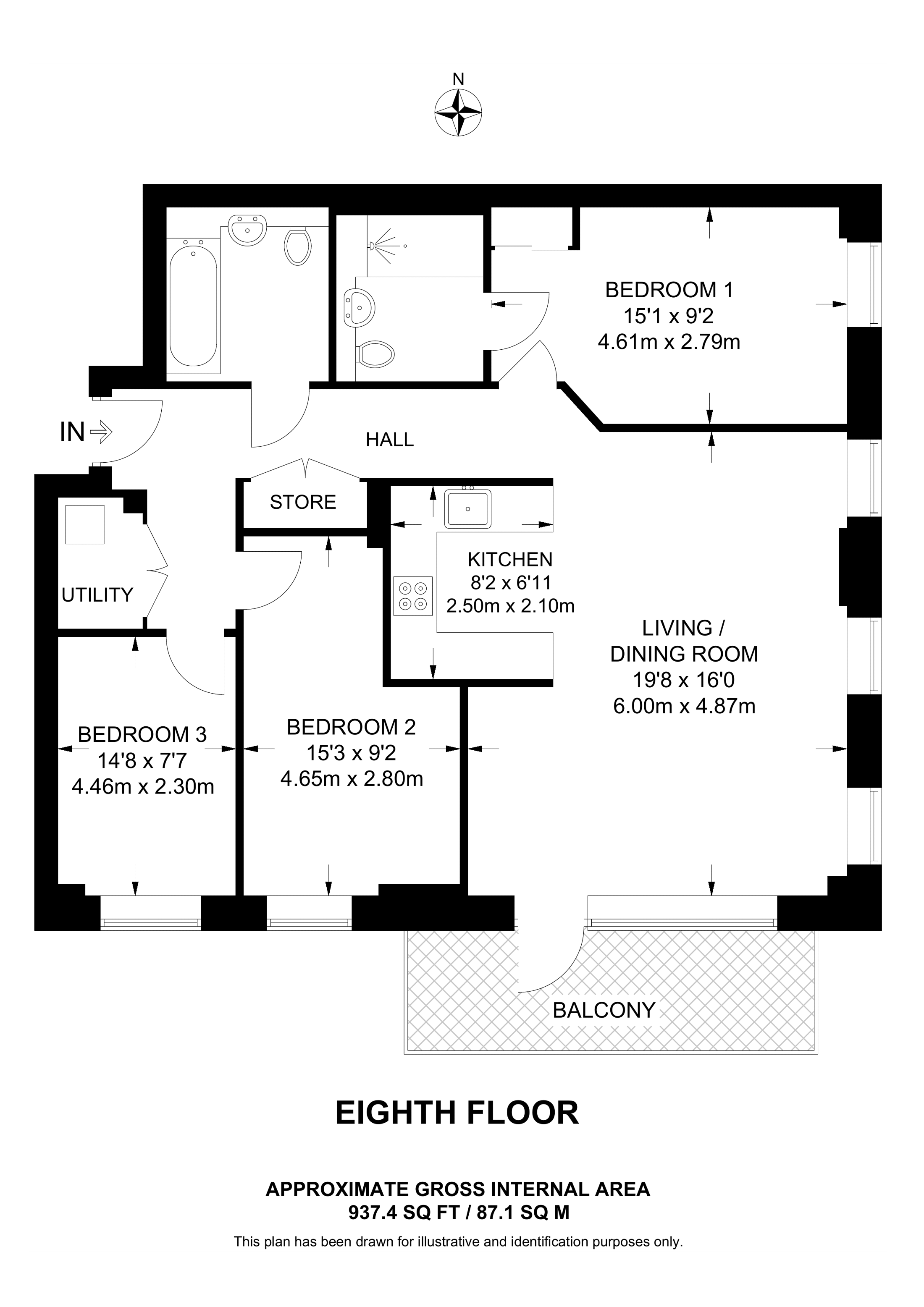 £602,000 South West aspect. 8th floor flat | 3 Beds | 937 Sq Ft87 Sq M |