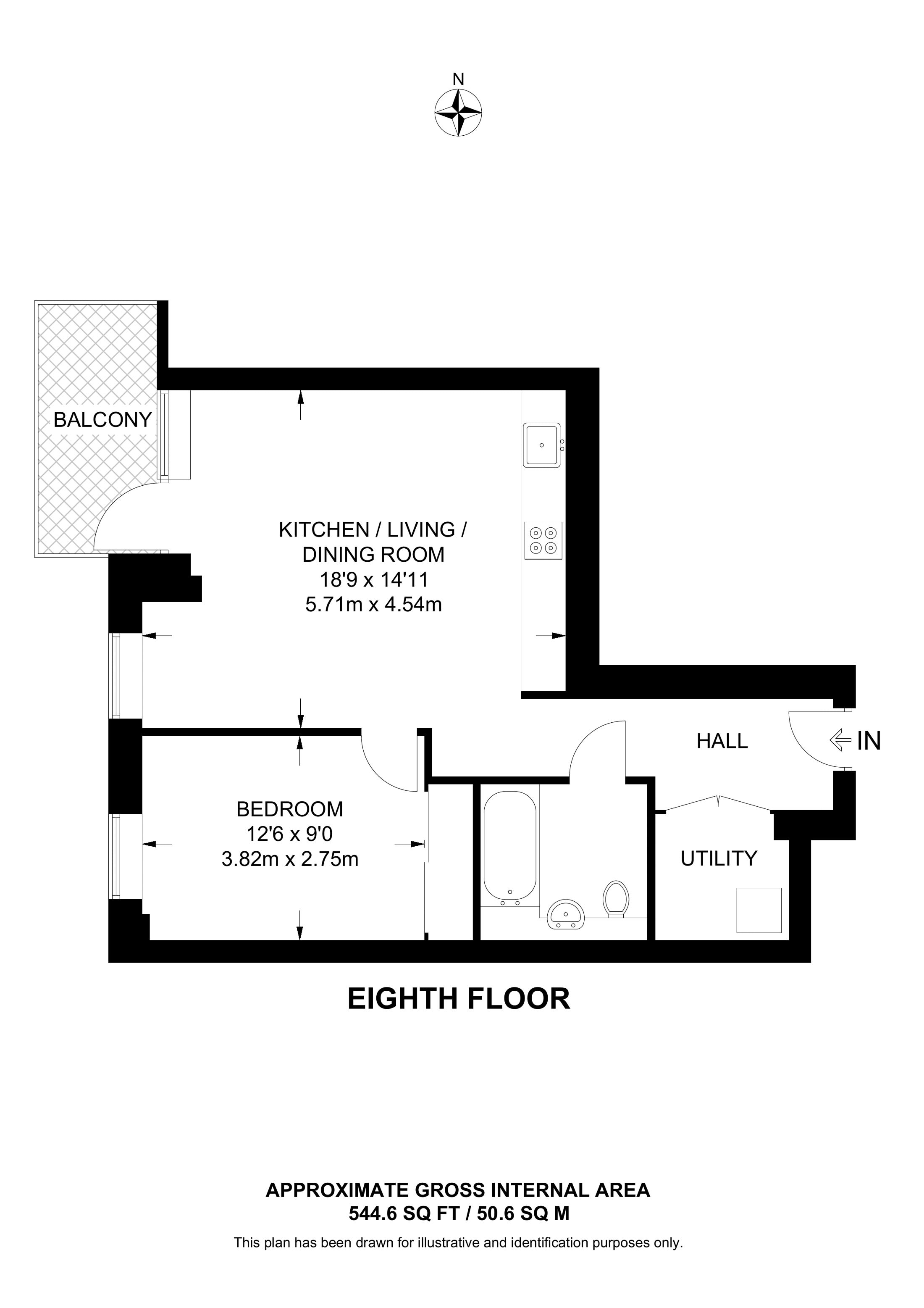 £382,000 West aspect. 9th floor flat | 1 Bed | 544 Sq Ft51 Sq M | ||