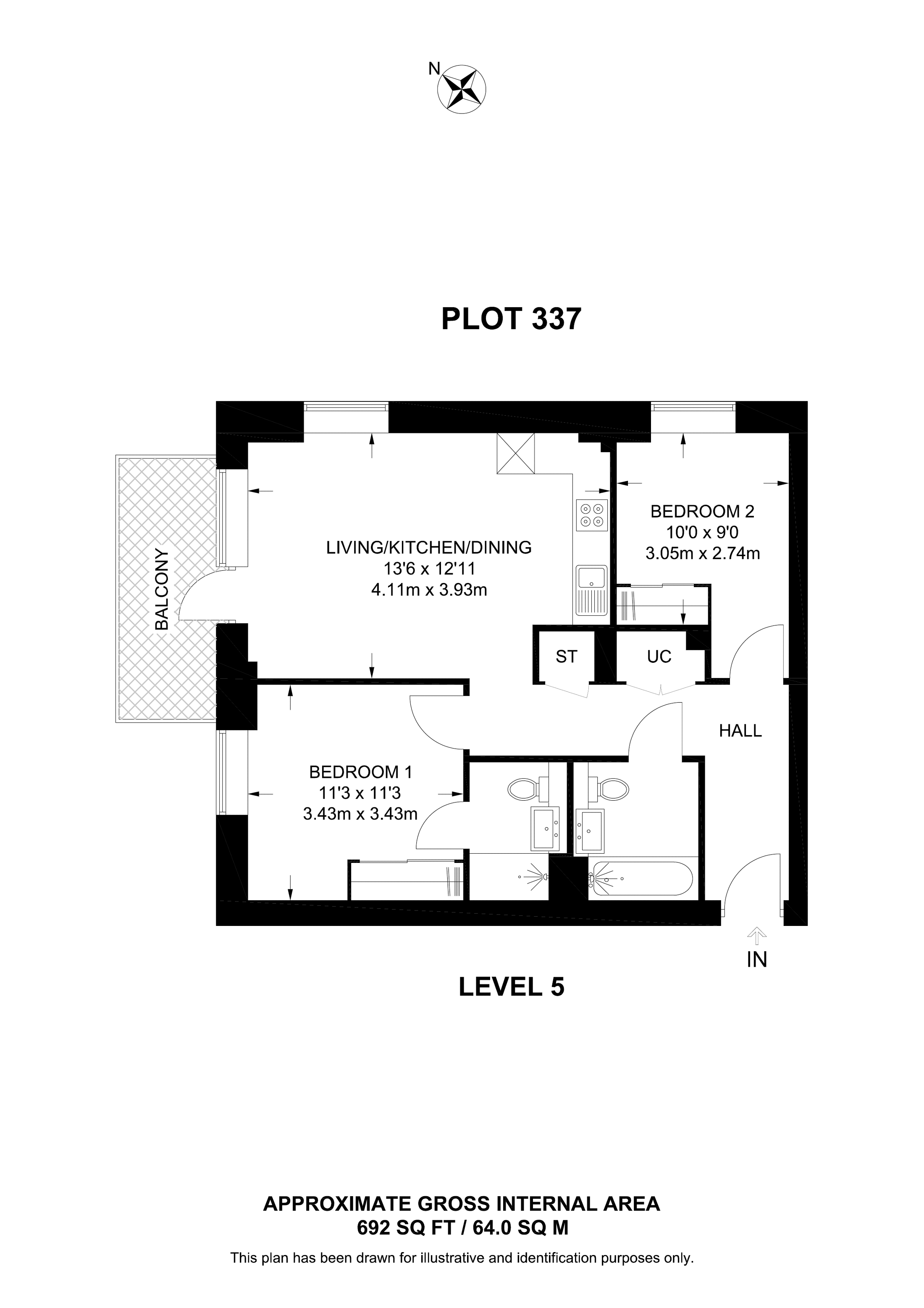 £561,000 North West aspect. 5th floor flat | 2 Beds | 689 Sq Ft64 Sq M | ||
