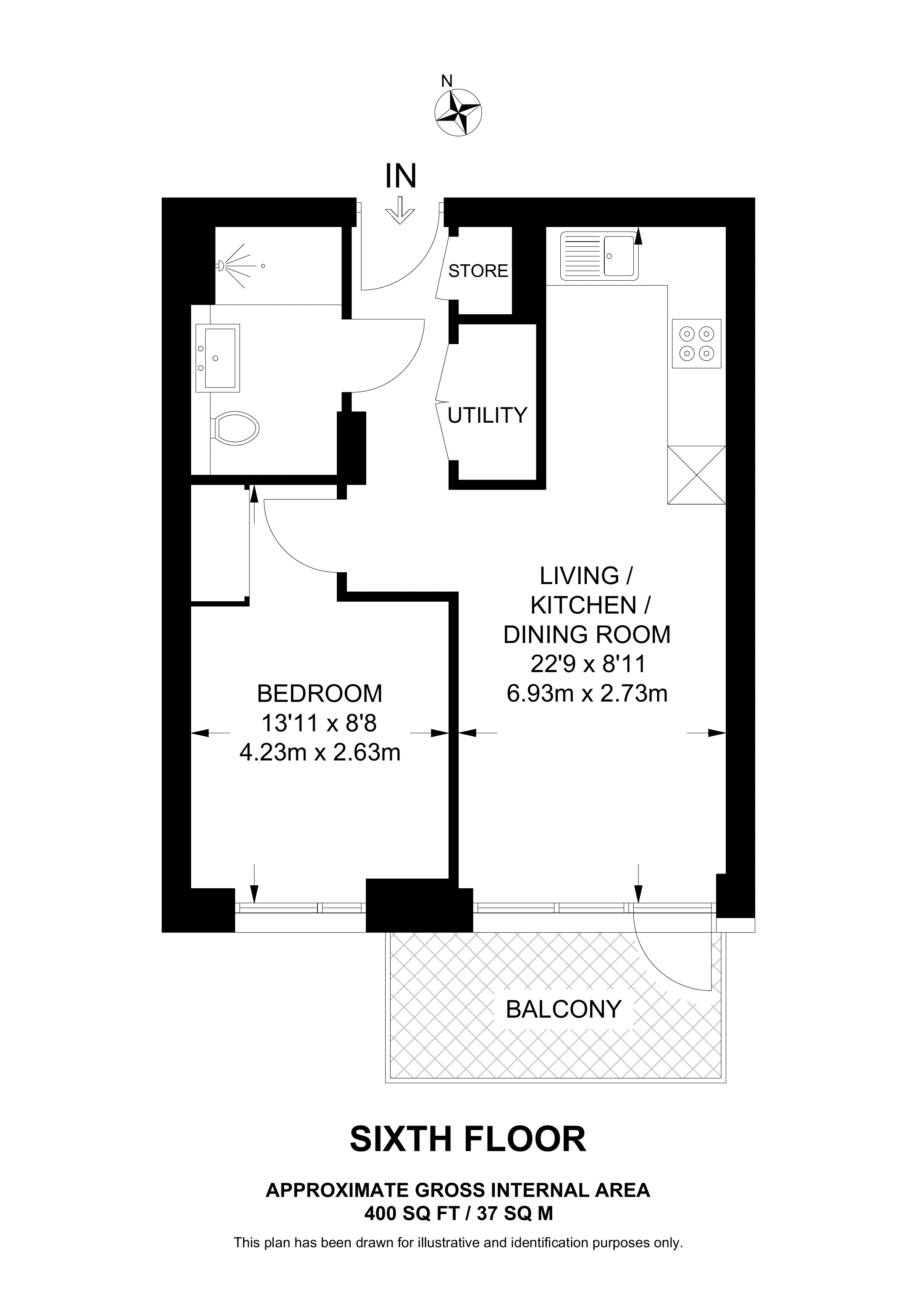 £434,000 South aspect. 6th floor flat | 1 Bed | 400 Sq Ft37 Sq M | ||