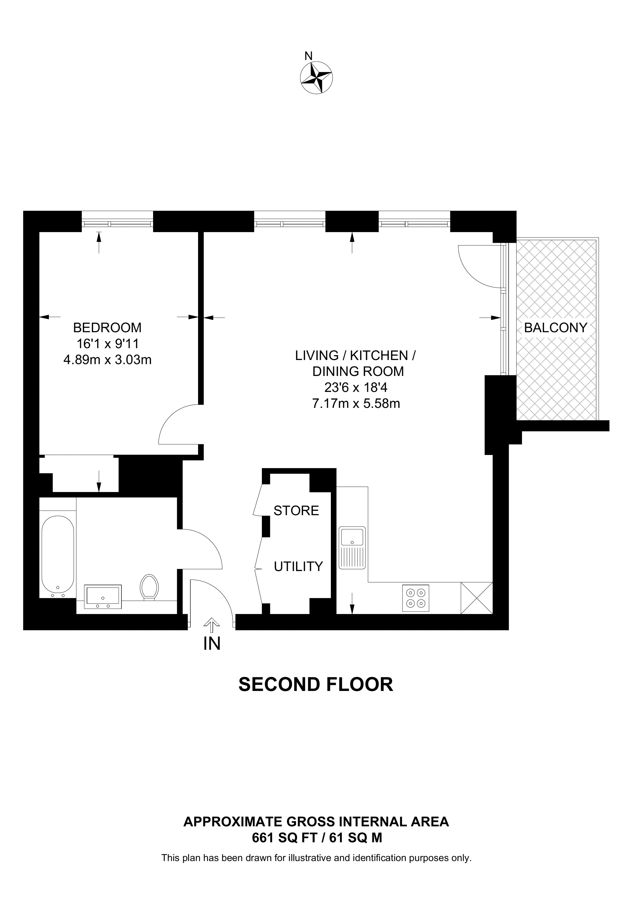 £457,000 North East aspect. 2nd floor flat | 1 Bed | 661 Sq Ft61 Sq M | ||
