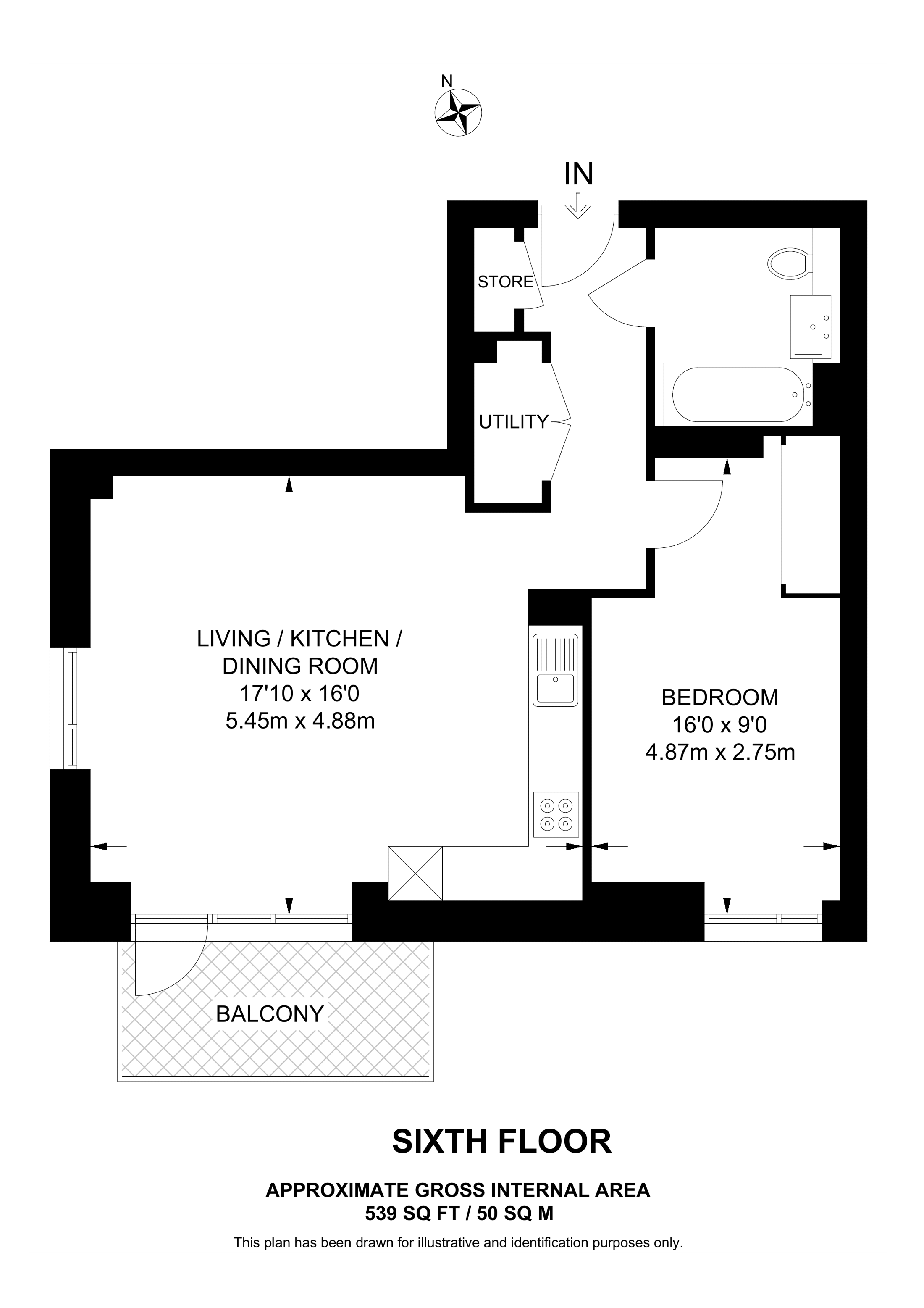 £469,000 West aspect. 3rd floor flat | 1 Bed | 543 Sq Ft50 Sq M | ||