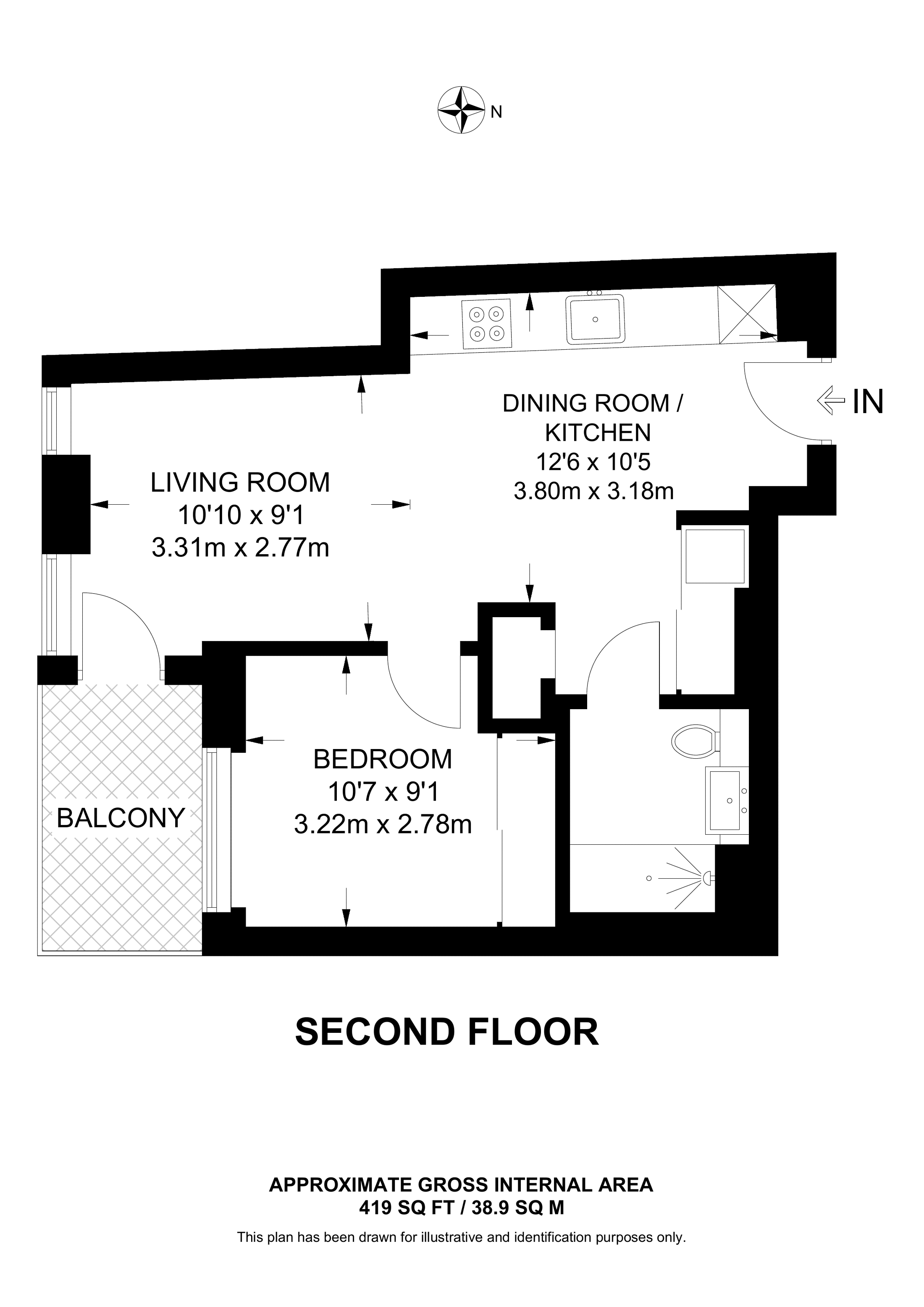 £785,000 North West aspect. 2nd floor flat | 1 Bed | 598 Sq Ft56 Sq M | ||