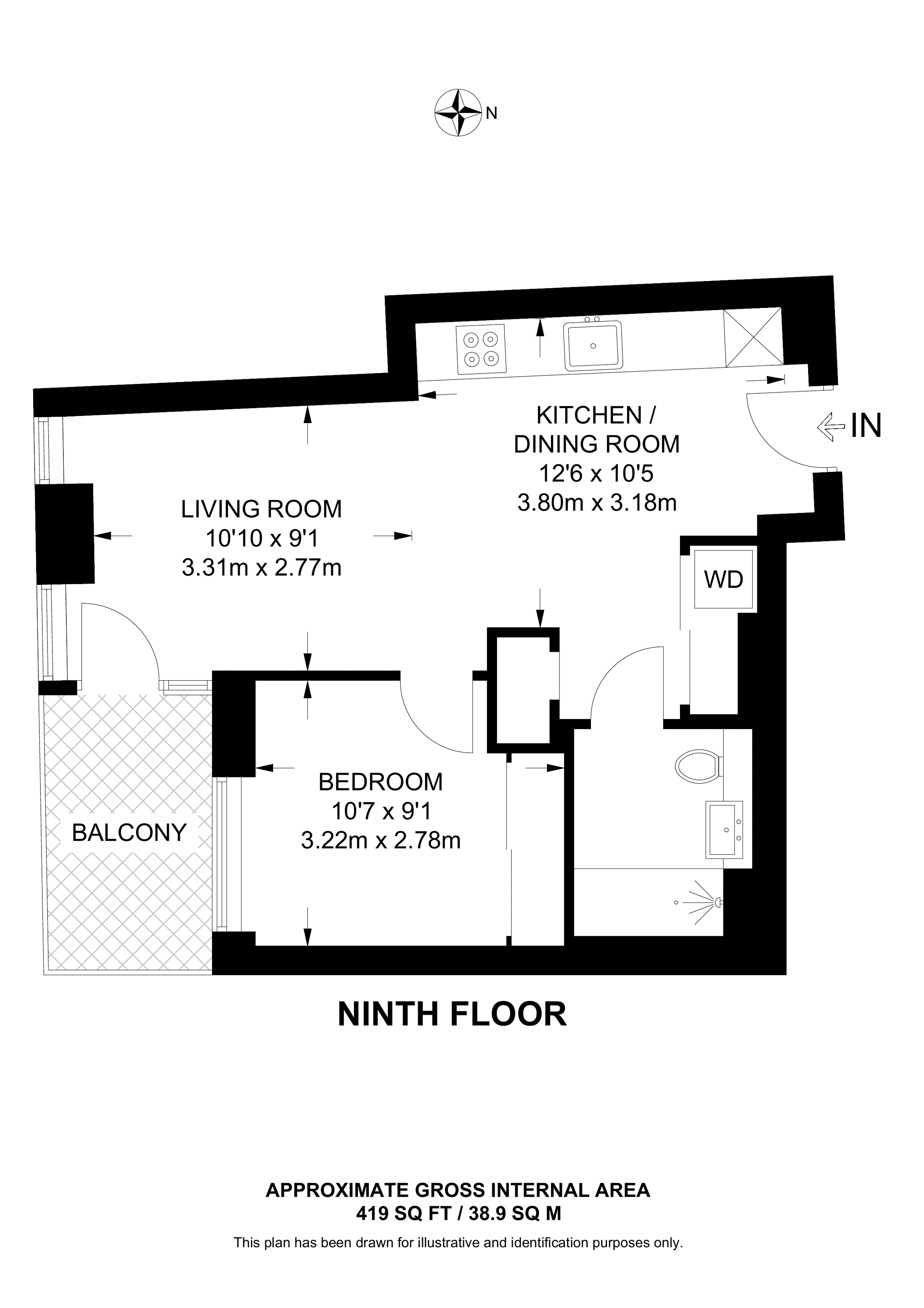 £830,000 North East aspect. 9th floor flat | 1 Bed | 580 Sq Ft54 Sq M | ||
