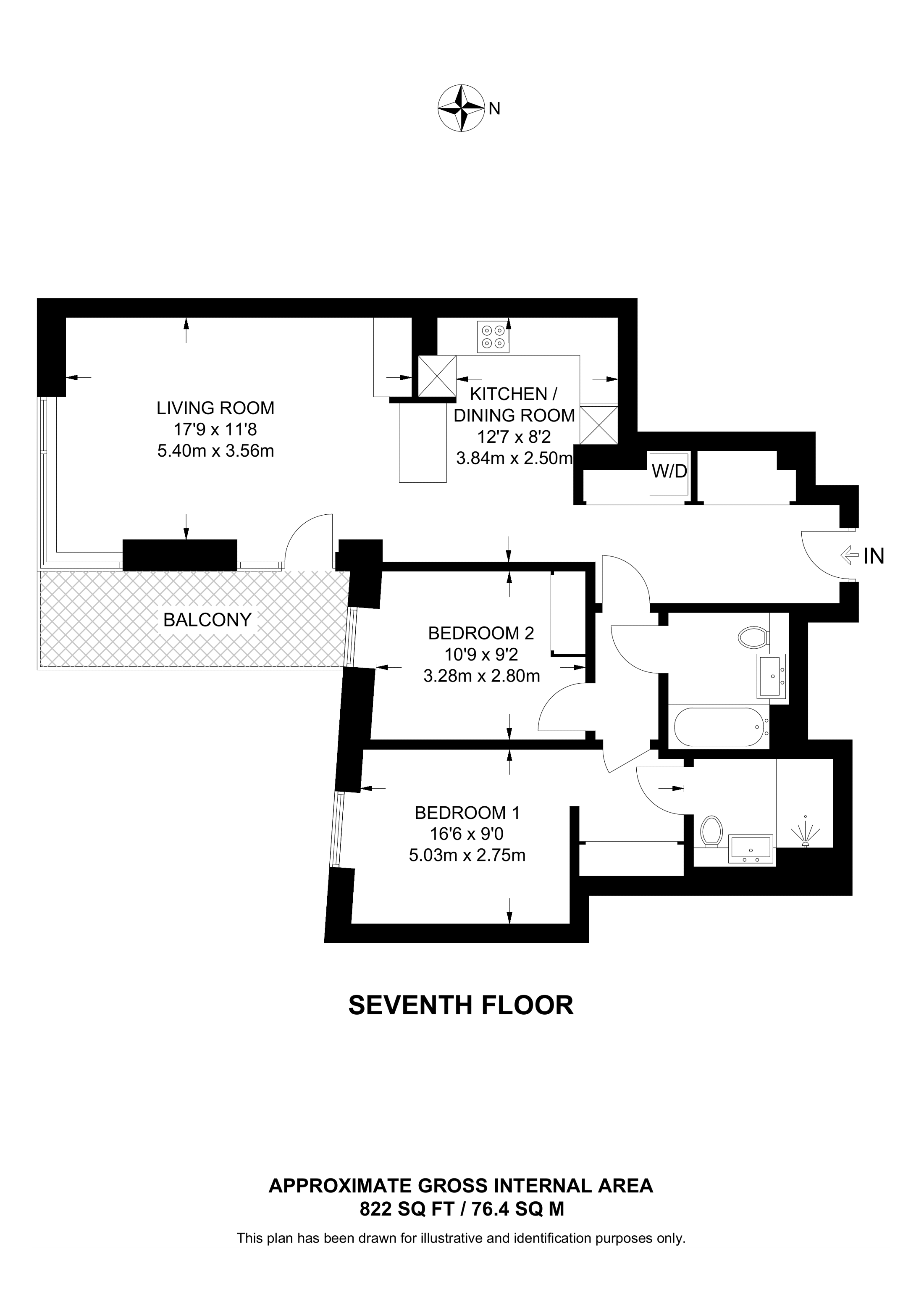 £1,350,000 North West aspect. 9th floor flat | 2 Beds | 801 Sq Ft74 Sq M | ||